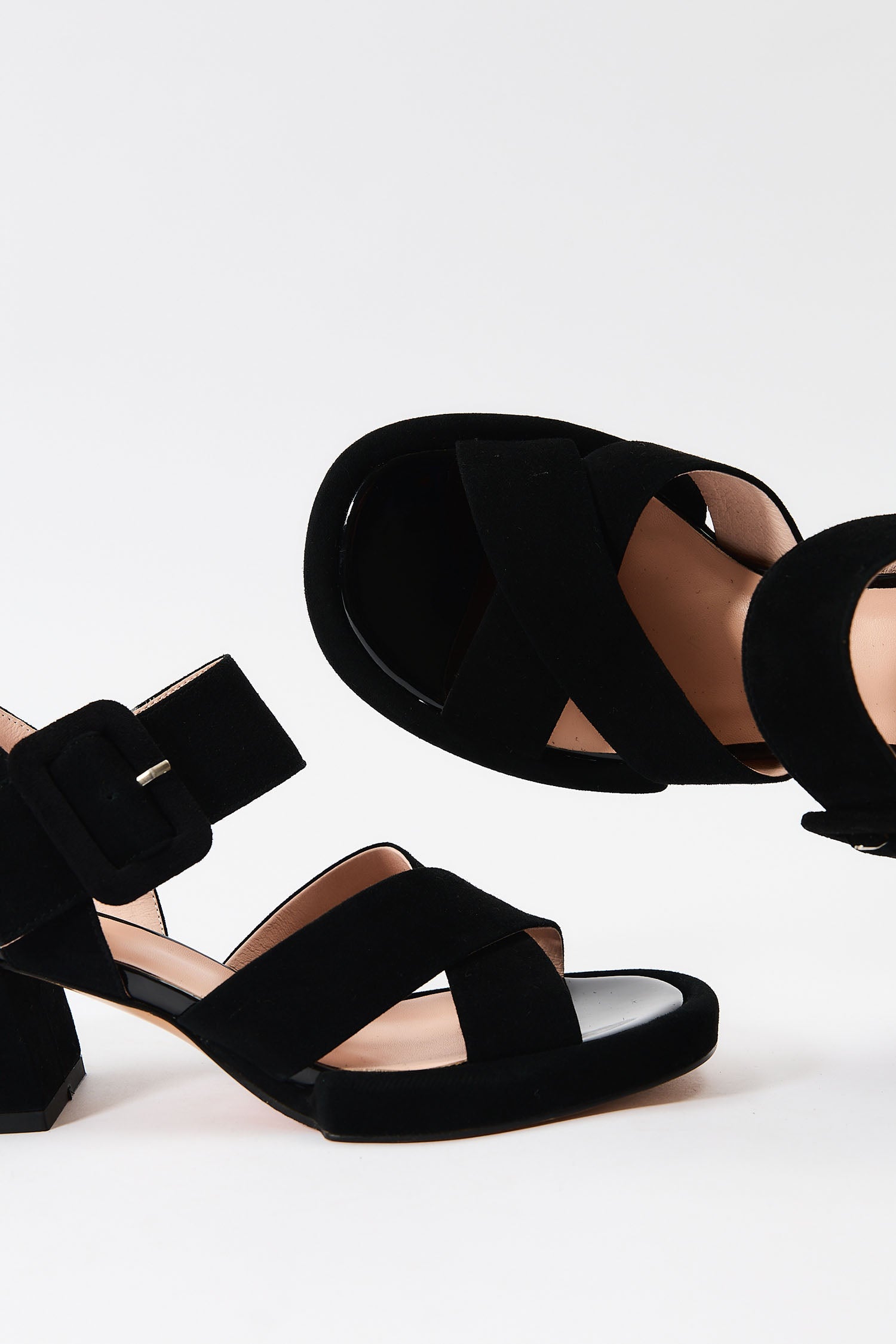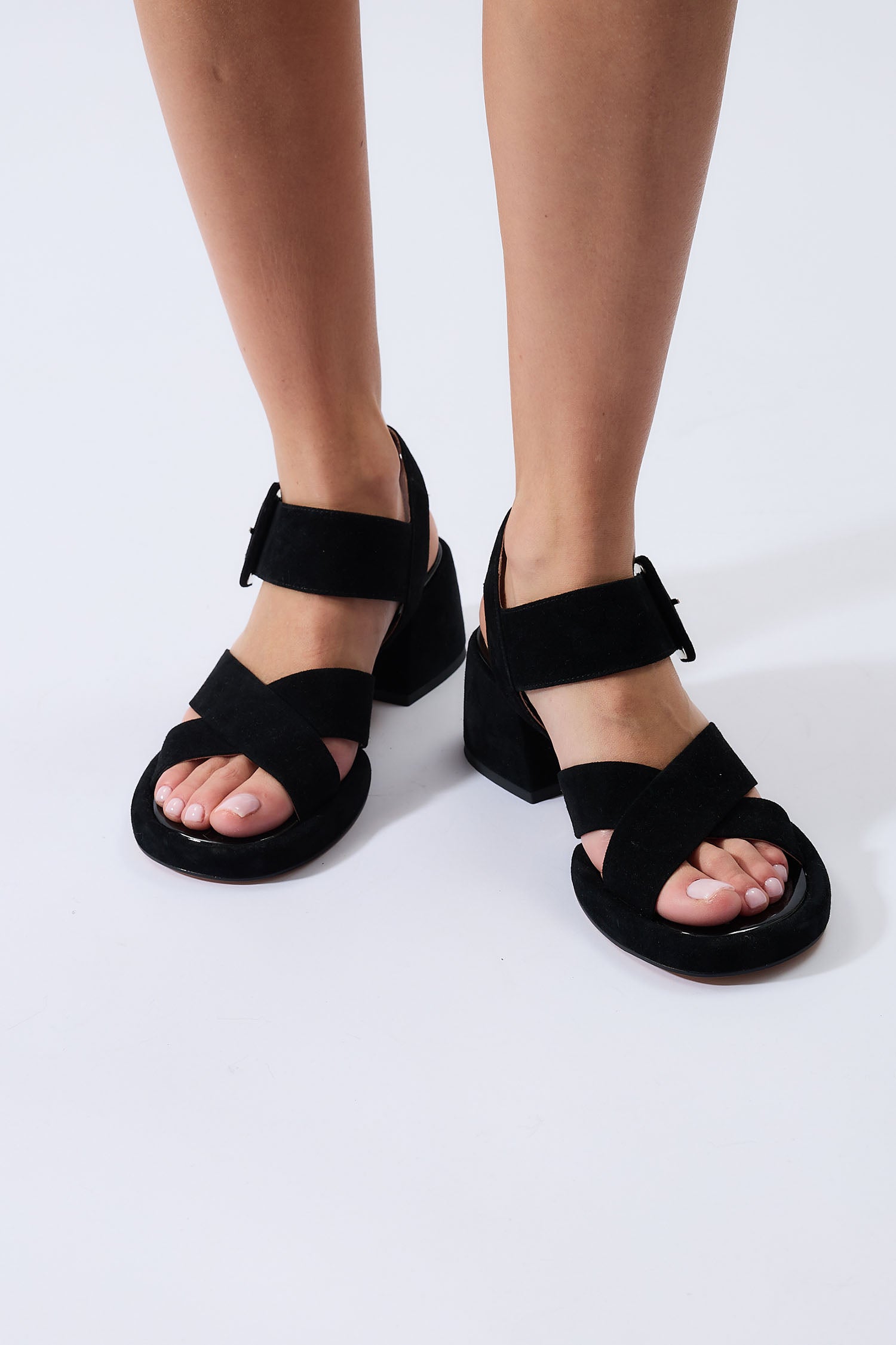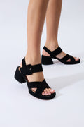 The Leticia Suede Block Heels are a masterclass in classic, feminine design, featuring a signature scalloped trim and delicate perforated details that set them apart from standard strappy sandals. Expertly crafted from velvety-soft premium suede, these heels boast a refined open-toe silhouette and a slender ankle strap with an adjustable buckle for a secure, customized fit.