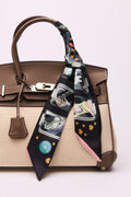 Elevate your daily style with this versatile Twilly, a playful yet sophisticated celebration of color and craftsmanship. Meticulously designed with intricate motifs ranging from equestrian classics to modern geometrics, this piece offers endless styling possibilities.