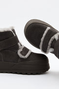 Designed for comfort and convenience, the Temi Winter Boots bring together modern practicality and cold-weather style. Crafted with a soft suede upper, these boots offer durability and a refined look. The interior is lined with plush wool, providing natural insulation and breathable warmth to keep your feet cozy in chilly conditions.